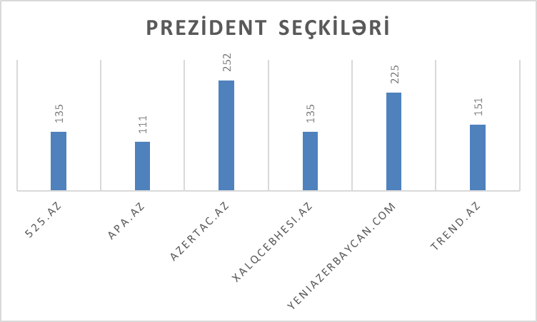 | Media | İlham Əliyevlə bağlı yazıların sayı | Digər namizədlərlə bağlı yazıların ümumi sayı | “Prezident seçkiləri” açar sözlü materialların sayı | |